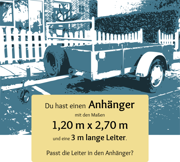 Ich: Stell dir vor, du willst einen Anhänger mieten und musst dir vorher überlegen, ob sie rein passt.